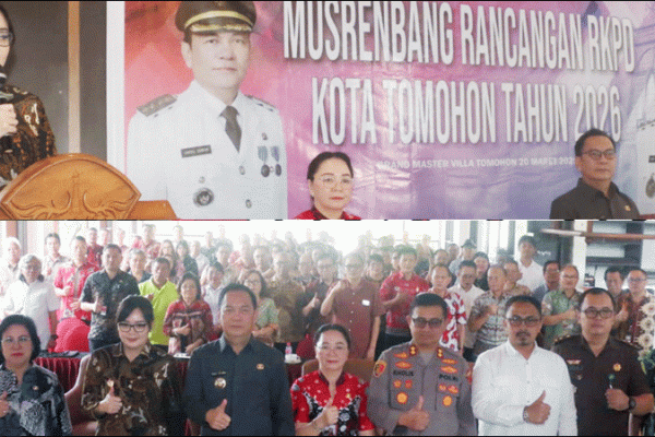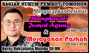 Tomohon – Pemerintah Kota Tomohon menggelar ibadah penghiburan atas meninggalnya Pdt Simon Jahja Surentu STh. Ibadah dipimpin Wakil Ketua FKUB Pdt Julien Karwur STh yang juga Ketua BPMJ Kakaskasen Pniel sekaligus Ketua BPMW Kakaskasen di rumah duka Keluarga Surentu-Tuju, Kelurahan Kumelembuai Kecamatan Tomohon Timur, Selasa 30 Maret 2026. Wali Kota Tomohon Caroll Senduk SH bersama…