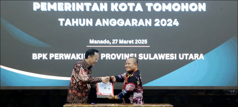 KOTATOMOHON.COM – Wali Kota Tomohon Caroll Senduk SH bersama Wakil Wali Kota Sendy Rumajar SE MIKom menyerahkan Laporan Keuangan Pemerintah Daerah (LKPD) Unaudited Pemkot Tomohon Tahun 2024 ke Badan Pemeriksa Keuangan (BPK) Perwakilan Provinsi Sulawesi Utara.