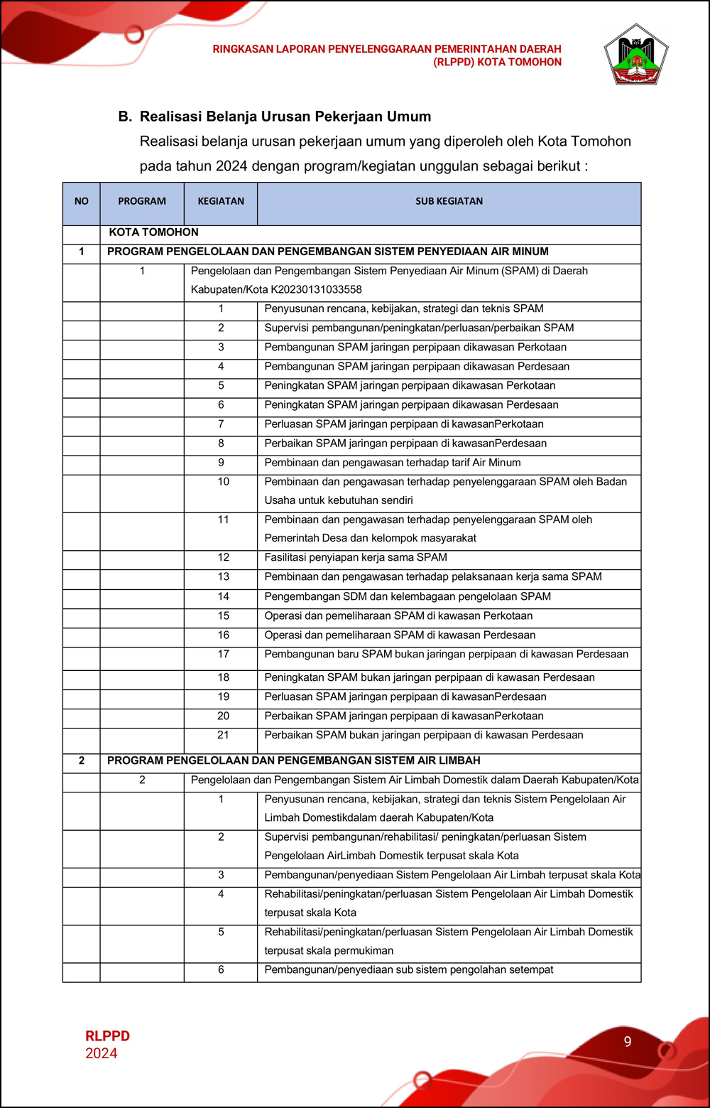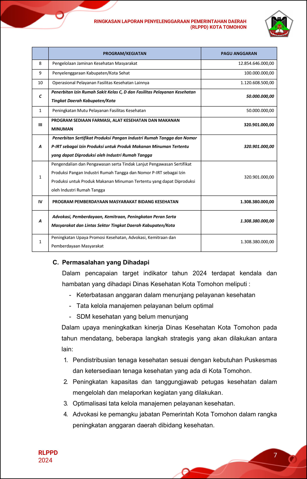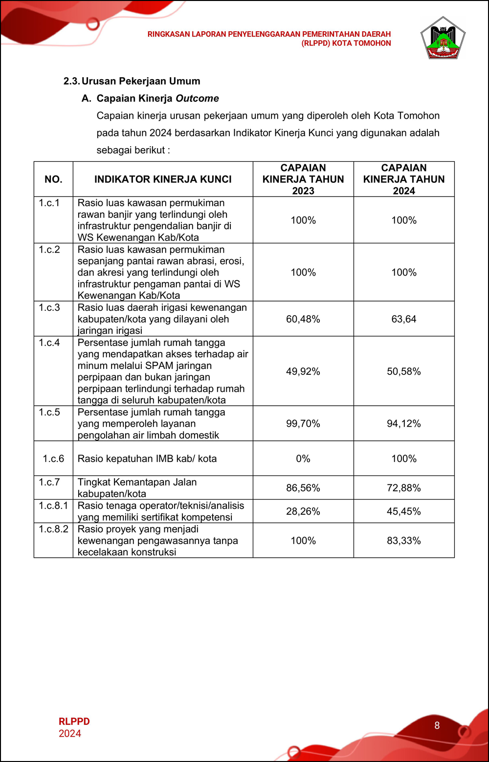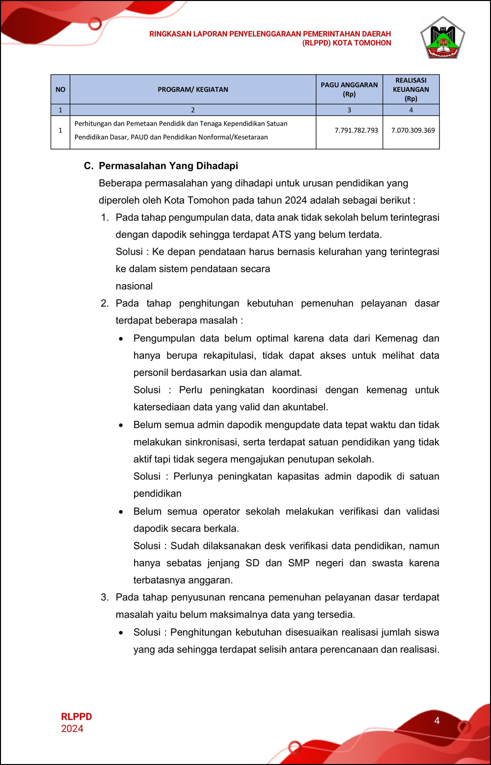 RLPPD Tahun 2024 ini berisi laporan kinerja Pemerintahan Kota Tomohon selama satu tahun.