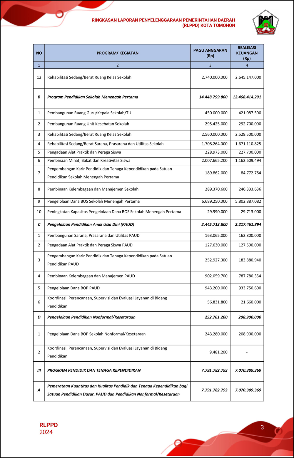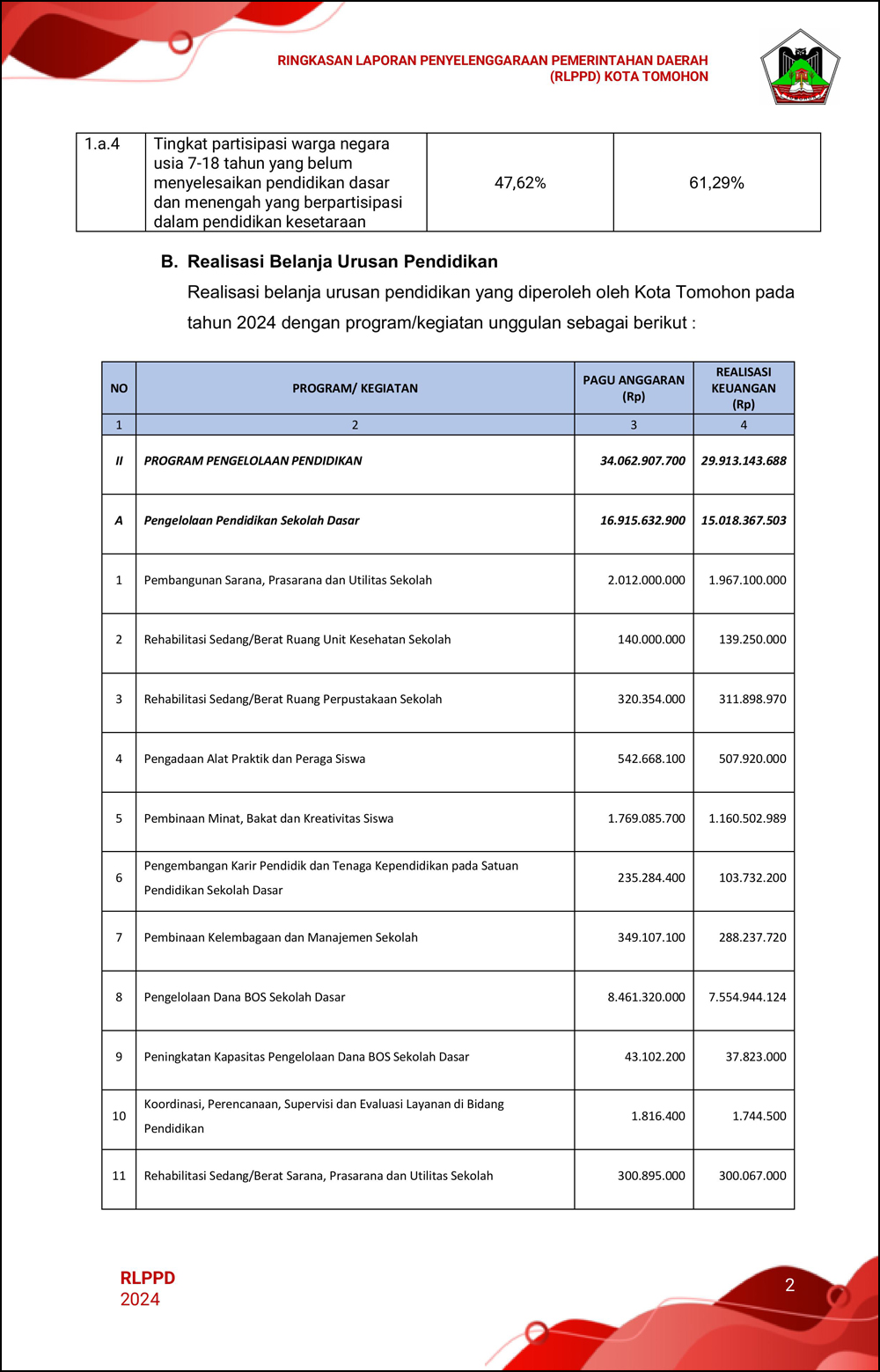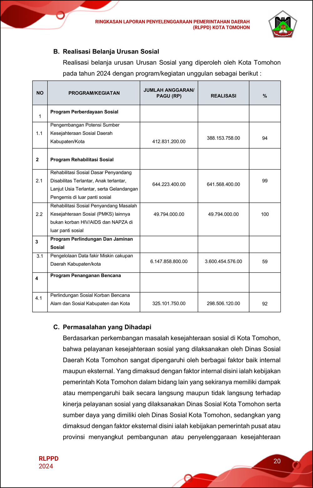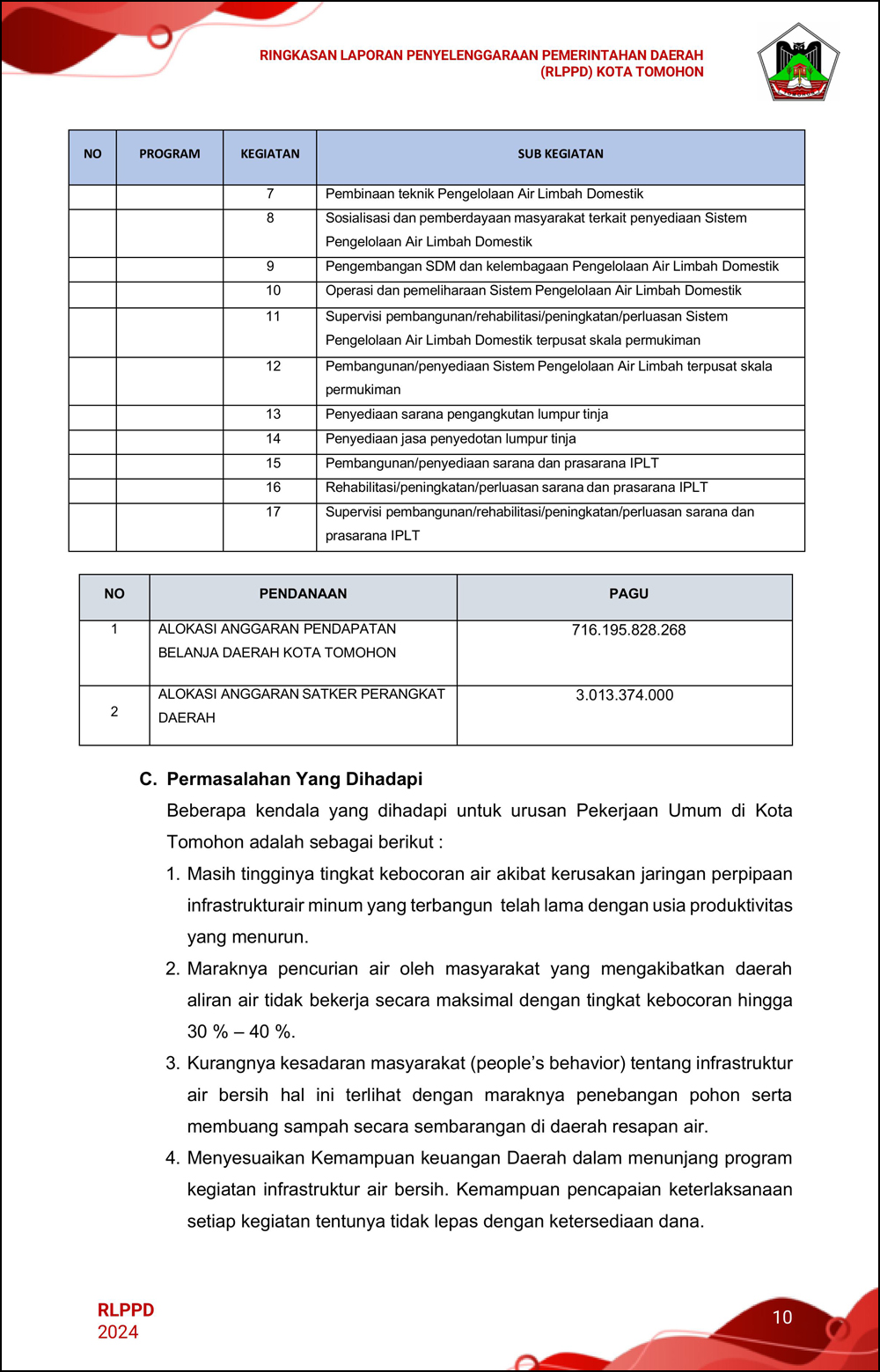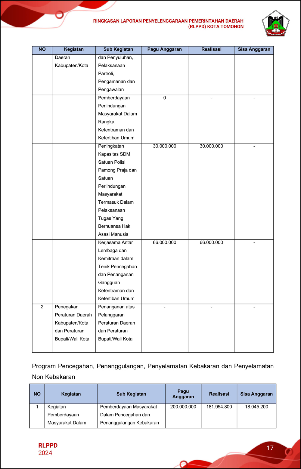 RLPPD Tahun 2024 ini berisi laporan kinerja Pemerintahan Kota Tomohon selama satu tahun.