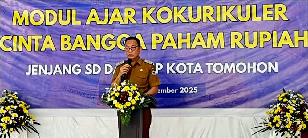 KOTATOMOHON.COM – Modul Ajar Kokurikuler Cinta, Bangga, Paham (CBP) Rupiah untuk jenjang SD dan SMP diluncurkan. Kegiatan ini berlangsung di SMP Katolik Stella Maris Tomohon, Selasa 4 November 2025 sebagai bagian dari program kemitraan Dinas Pendidikan Kota Tomohon yang ditandai dengan pemukulan Tetengkoren